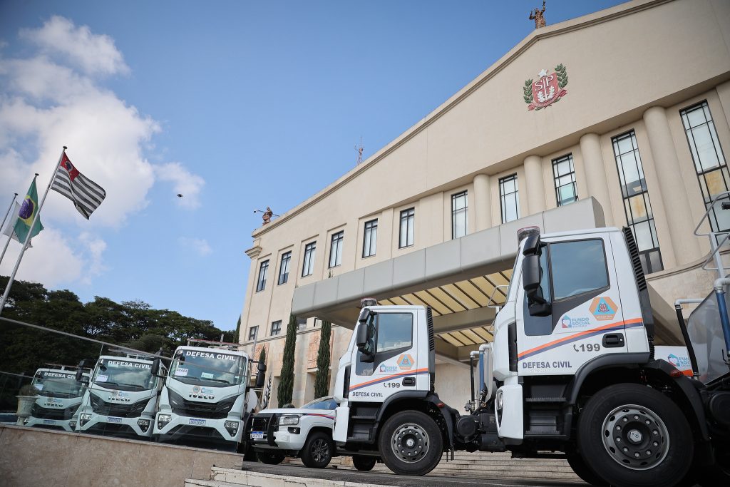 Crédito: Veículos novos para a Defesa Civil ao redor do Palácio dos Bandeirantes Foto: Divulgação Agência SP
